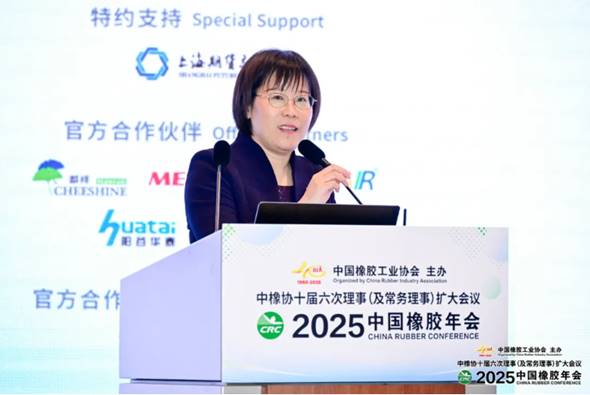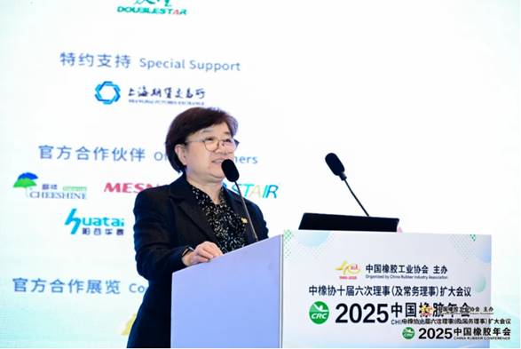 中国橡胶工业协会会长徐文英,以“胸藏远景,昂首拓新:2025年中国橡胶行业的机遇与挑战”为题,作十届六次理事会工作汇报。